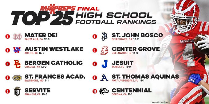 12 ranking in the High School Football America 100 national rankings he was also recently named winner of the 2020 states Mr. Center Grove ranked 18 in our National Top 25 is the top team in the region. 14 this week in the CBS MaxPreps Computer Football Rankings.